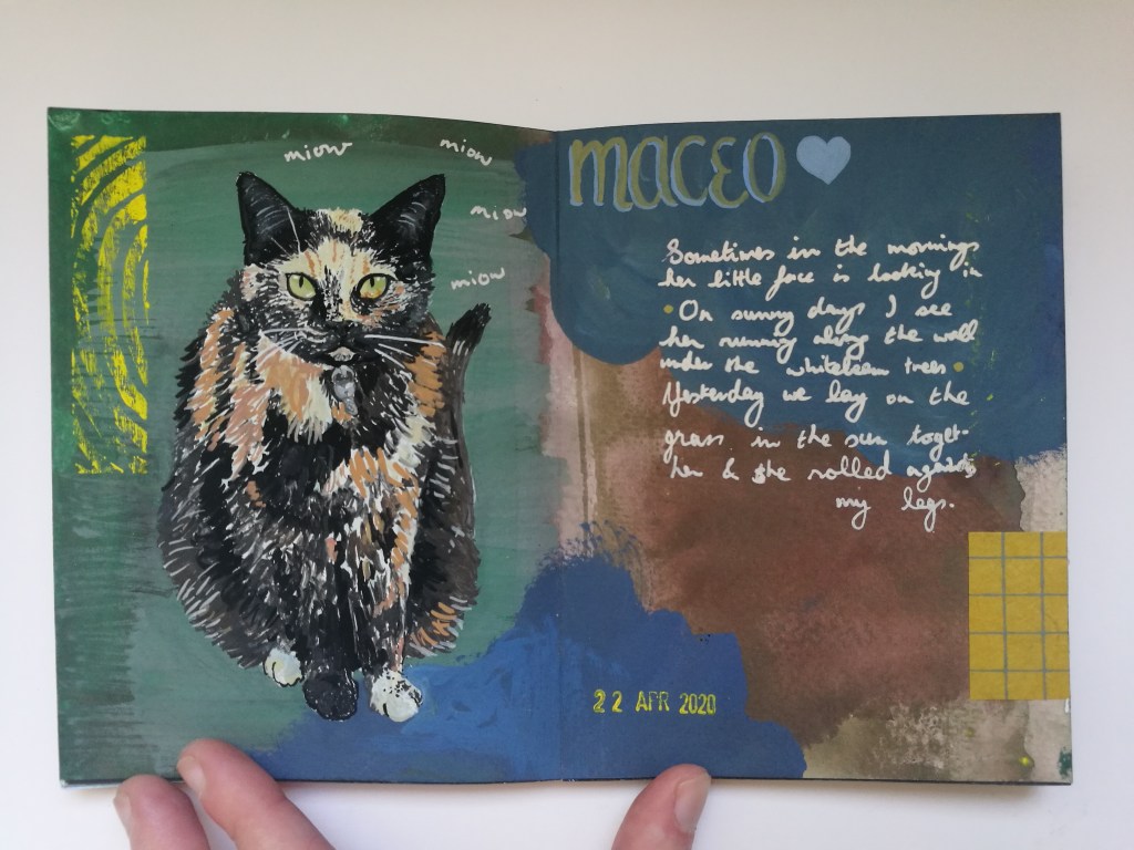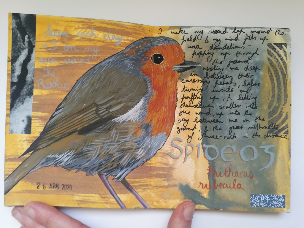 This is a journal I kept during lockdown, recording my encounters with the natural world using gouache and collage. I painted in this book daily, often for hours at a time.